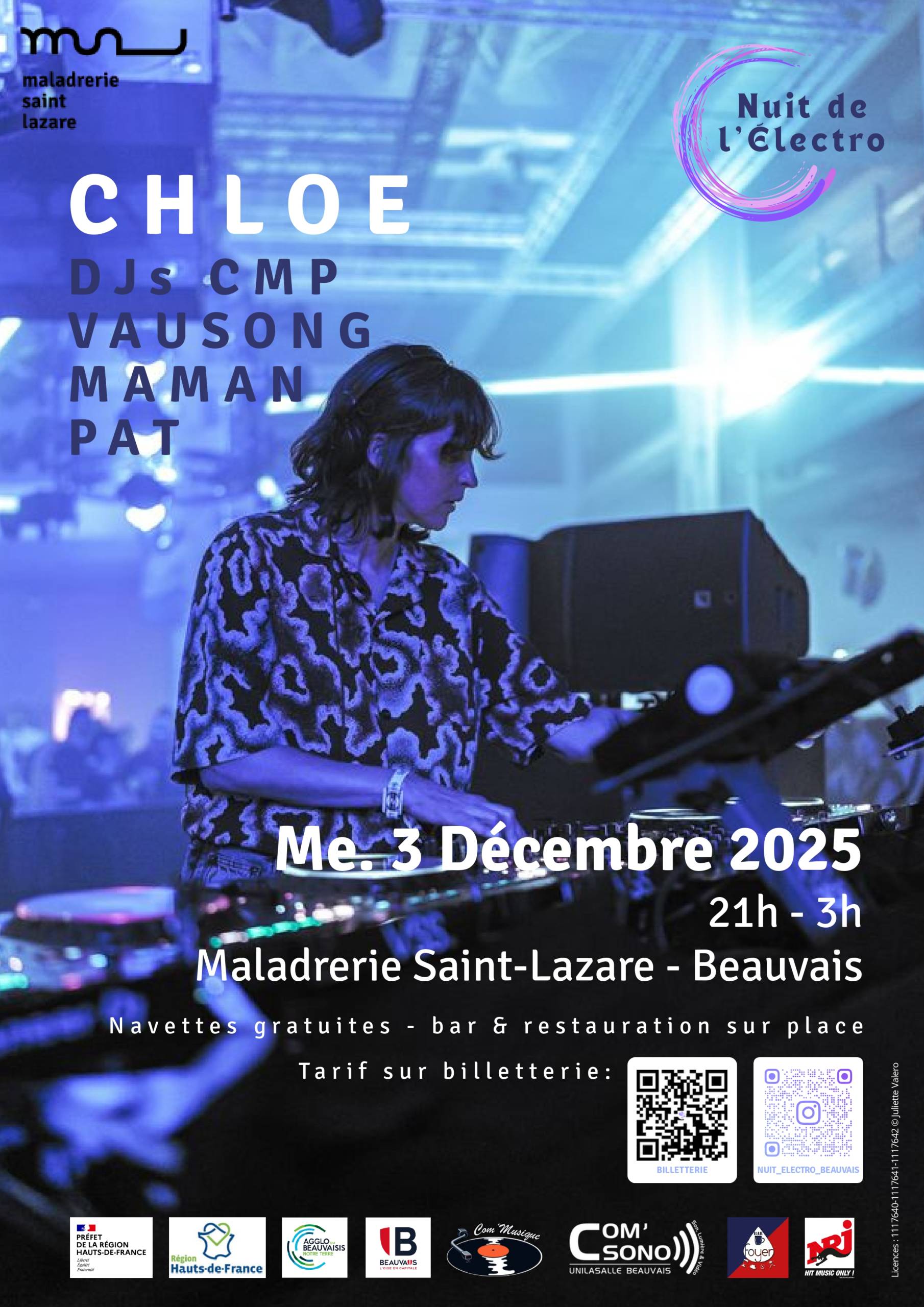 Autour de Dj’s émergents (DJ CMP, Vausong, MaMan, Pat) et d'une tête d'affiche de renom, les artistes se succéderont durant cette nuit organisée par la Maladrerie Saint-Lazare et l’UniLaSalle Beauvais.